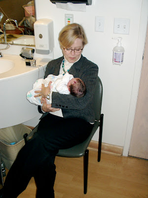 "Margo" was born on January 3, 2008 around 4 p.m. She weighs 7 lbs. 7 oz. and is about 19 and a half inches long. She is healthy as any baby could be! Margo has dark hair and long eyelashes. The nurses said she was the prettiest baby in the Utah Valley Regional Medical Center nursery! Grampa Valentine delivered a dozen chocolate eclairs from "Shirley's" bakery in Provo. Father Chris Clark helped the nurses bathe Margo. Grandmother delivered a new blanket. Are we all blessed, or what? Eleven grandchildren for Bob and Shauna, and there are two more (Gina and Marilyn) on the way!